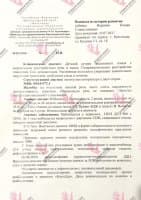 Речи на данный момент нет, артикуляция хорошая, но четкость букв даётся тяжело. Понимание речи ситуативно-бытовое, лучше запоминает глаголы, чем существительные. Элементарные навыки самообслуживания сформированы. Рисовать и писать Богдан не может, буквы, цифры, формы, цвета - не знает. С другими детьми на контакт не идёт, иногда может проявлять агрессию в их сторону. Периодами случаются продолжительные беспричинные истерики, которые приходится купировать психотропными медикаментами.