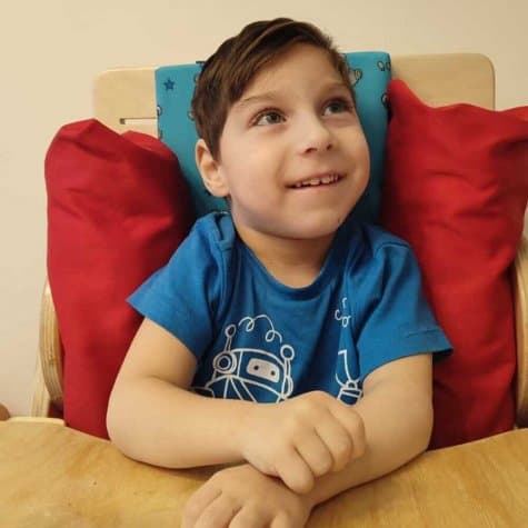 В прошлом году Август пошёл в детский сад, где его приняли с теплом и радостью, дети с удовольствием помогают ему. К сожалению, сильный мышечный тонус остаётся серьёзной проблемой, приносящей Августу дискомфорт и ограничивая его двигательную активность. Справиться с этим помогают реабилитации в ДЦА «Родник», где специалисты уже нашли подход к ребенку и составили план занятий. Но семье не по силам самостоятельно оплатить очередной курс лечения, так как работает только папа и много средств уходит на врачей и дорогостоящие лекарства.