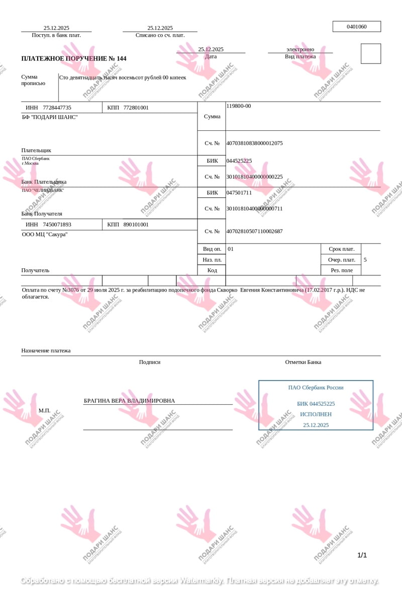 «Мы надеемся пройти курс реабилитации в МЦ «Сакура» и опробовать новые методики лечения для улучшения состояния Жени, - обращается мама, - «Возлагаем большие надежды на этот центр и просим помочь оплатить реабилитацию!»