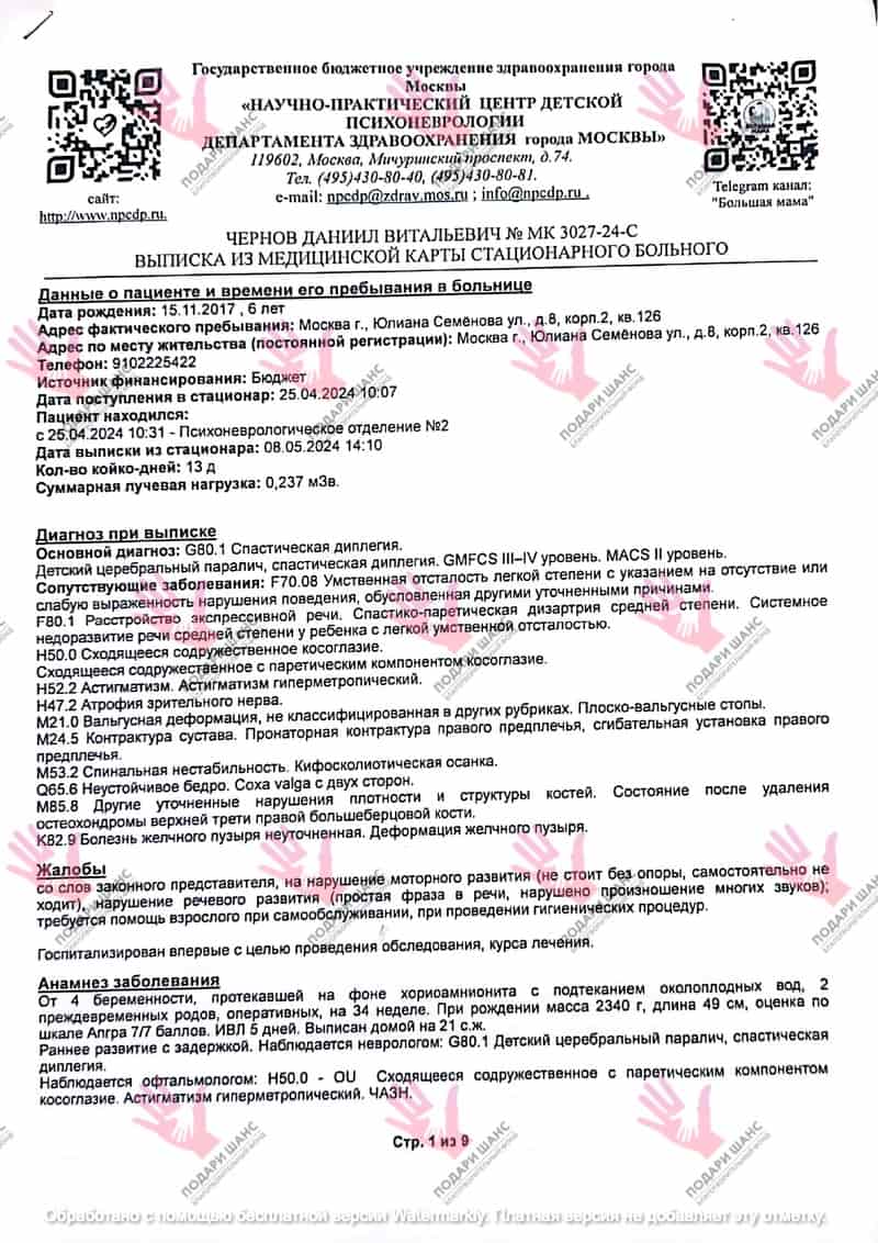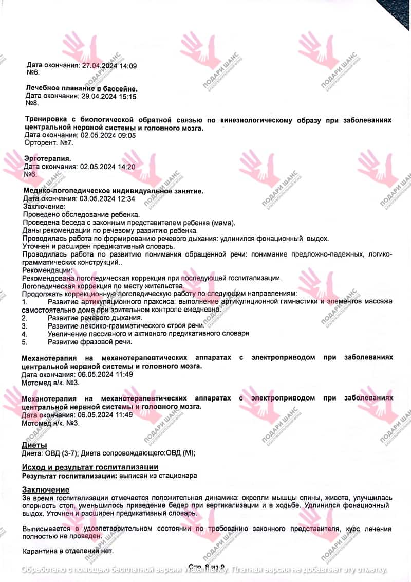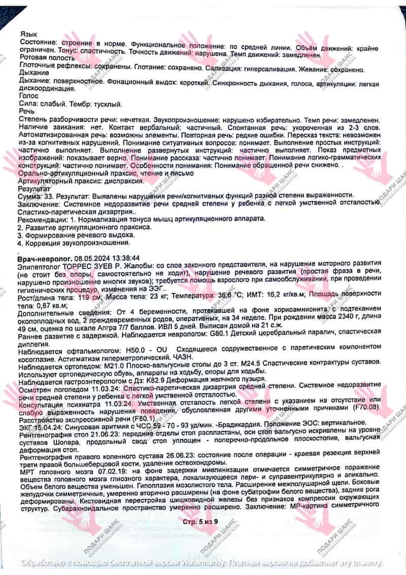 Диагноз: ДЦП, Спастическая диплегия, задержка психоречевого развития