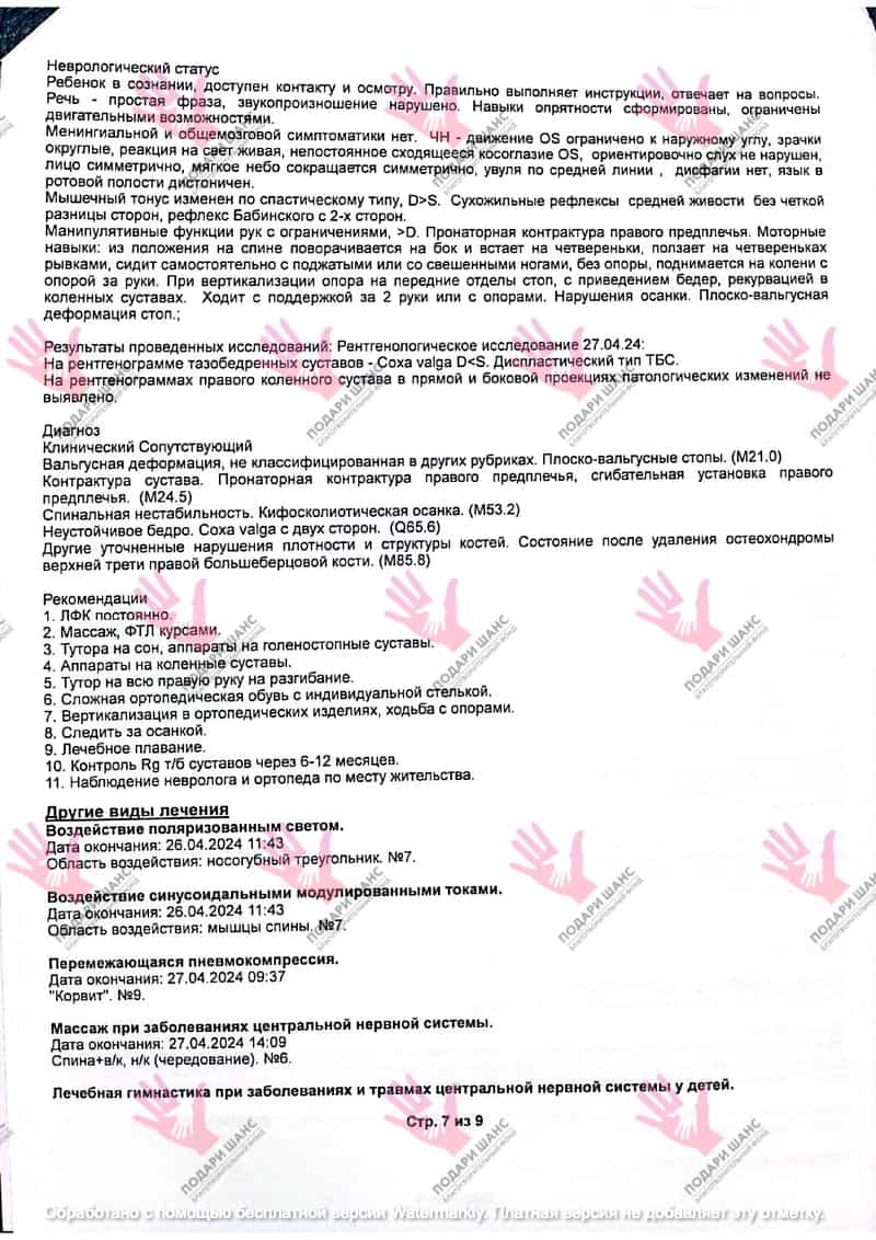 Диагноз: Синдром двигательных нарушений, спастический тетрапарез. Последствия перинатального поражения ЦНС