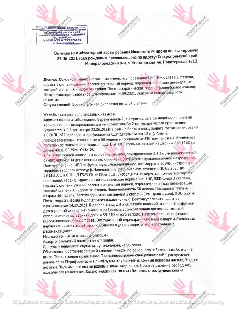 Уважаемые благотворители! Открыт сбор средств для оплаты необходимого курса лечения для Мирона.