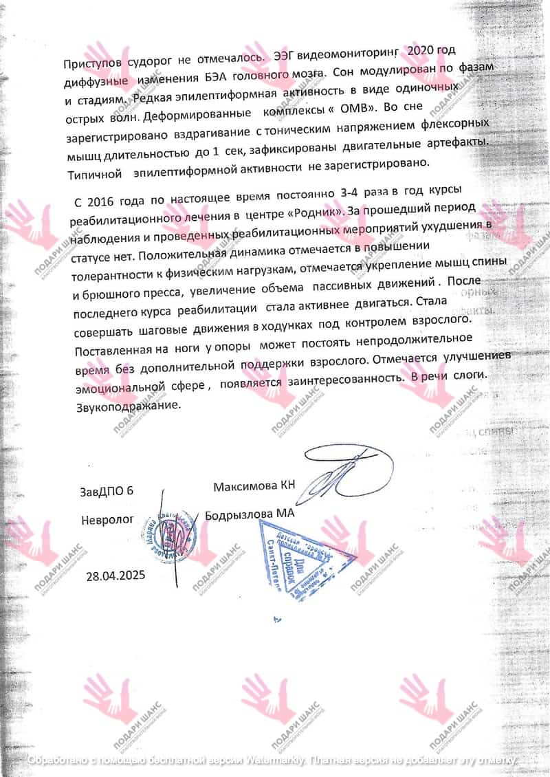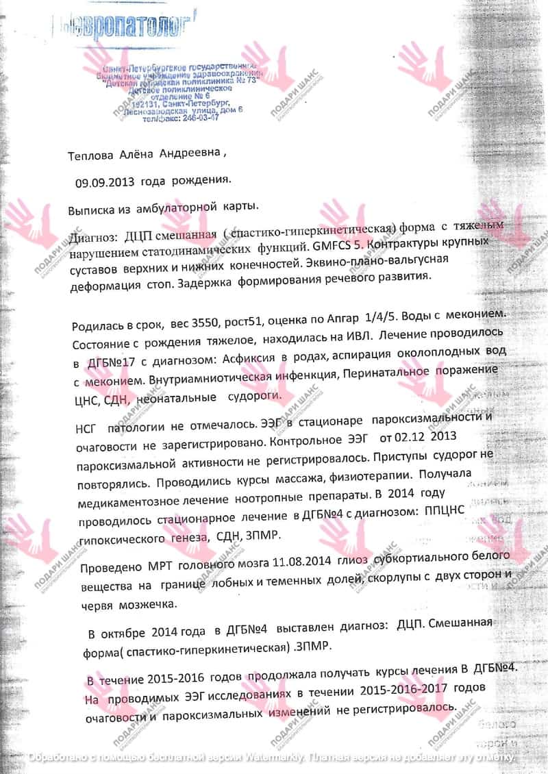 Мы искренне верим, что с вашей поддержкой и помощью мы сможем добиться еще более лучших результатов. Благодарю всех добрых людей, готовых оказать помощь нашей доченьке! Спасибо вам!»