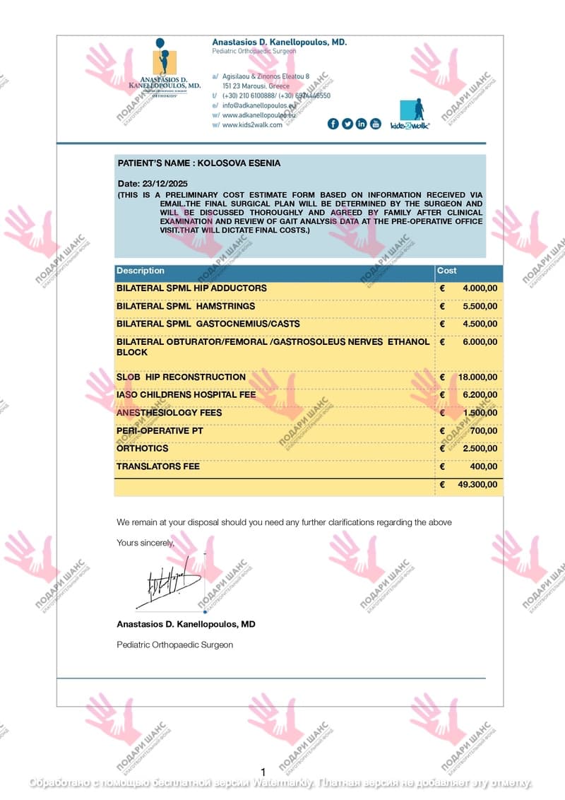 Требуется: Комплексная операция SLOB+SPML в клинике «Laso Children`s Hospital», Греция (частичный сбор)