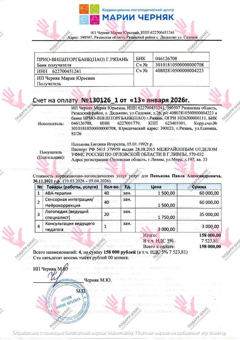 И вот, когда надежда начала угасать, мы попали в Коррекционно-логопедический центр Марии Черняк в Рязани. И там произошло настоящее чудо. За два месяца интенсивной реабилитации мой Пашенька произнес свои первые слова! Улучшилось его поведение, он стал лучше понимать обращенную к нему речь. Центр Марии Черняк обладает огромным опытом работы с детьми с аутизмом. Они знают, как найти подход к каждому ребенку, их методы – АВА-терапия, нейрокоррекция, АФК, логопедия – все это без использования аппаратных стимуляций мозга, что крайне важно при аутизме. Именно такой подход нужен моему сыну.