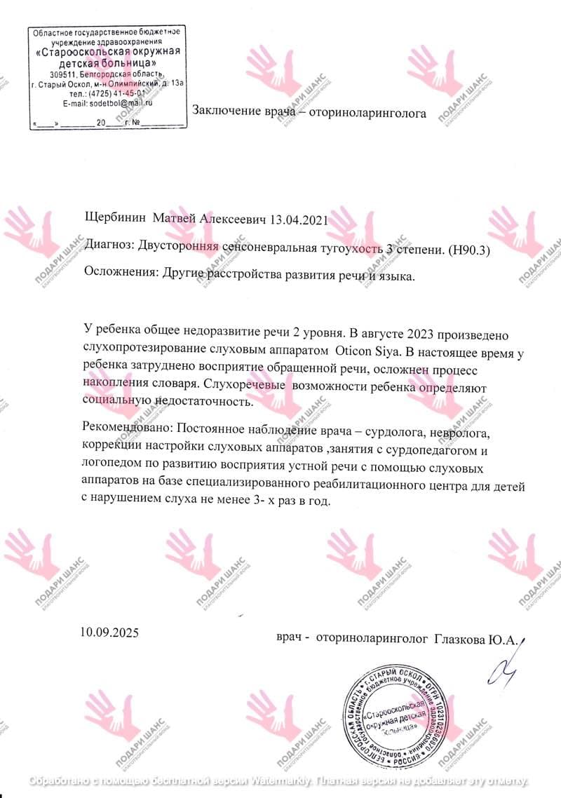 Сейчас семья нуждается в вашей помощи для оплаты дальнейшей реабилитации. Каждый ваш вклад – это шаг к тому, чтобы дети смогли услышать мир вокруг себя, научиться прекрасному дару речи и жить полной, счастливой жизнью.
