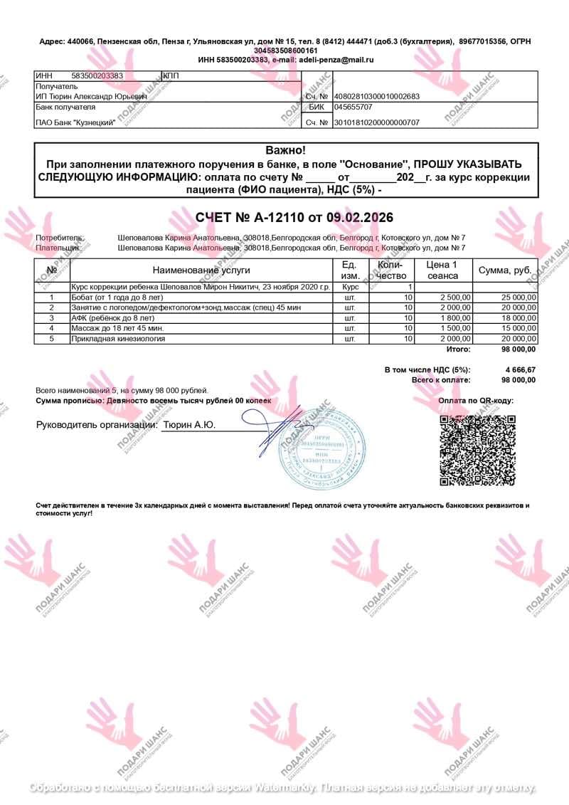 Стоимость курса реабилитации составляет 98 000 рублей. К сожалению, этот центр не входит в перечень бесплатных клиник, и оплатить лечение самостоятельно мы не можем.