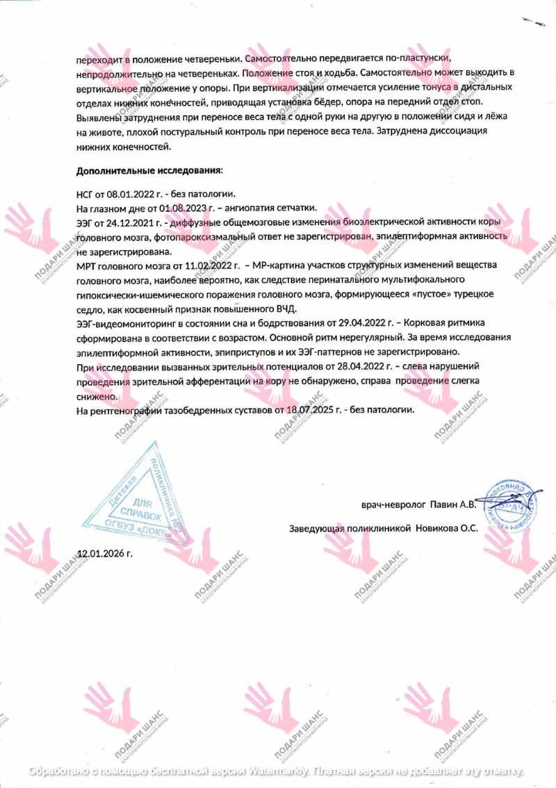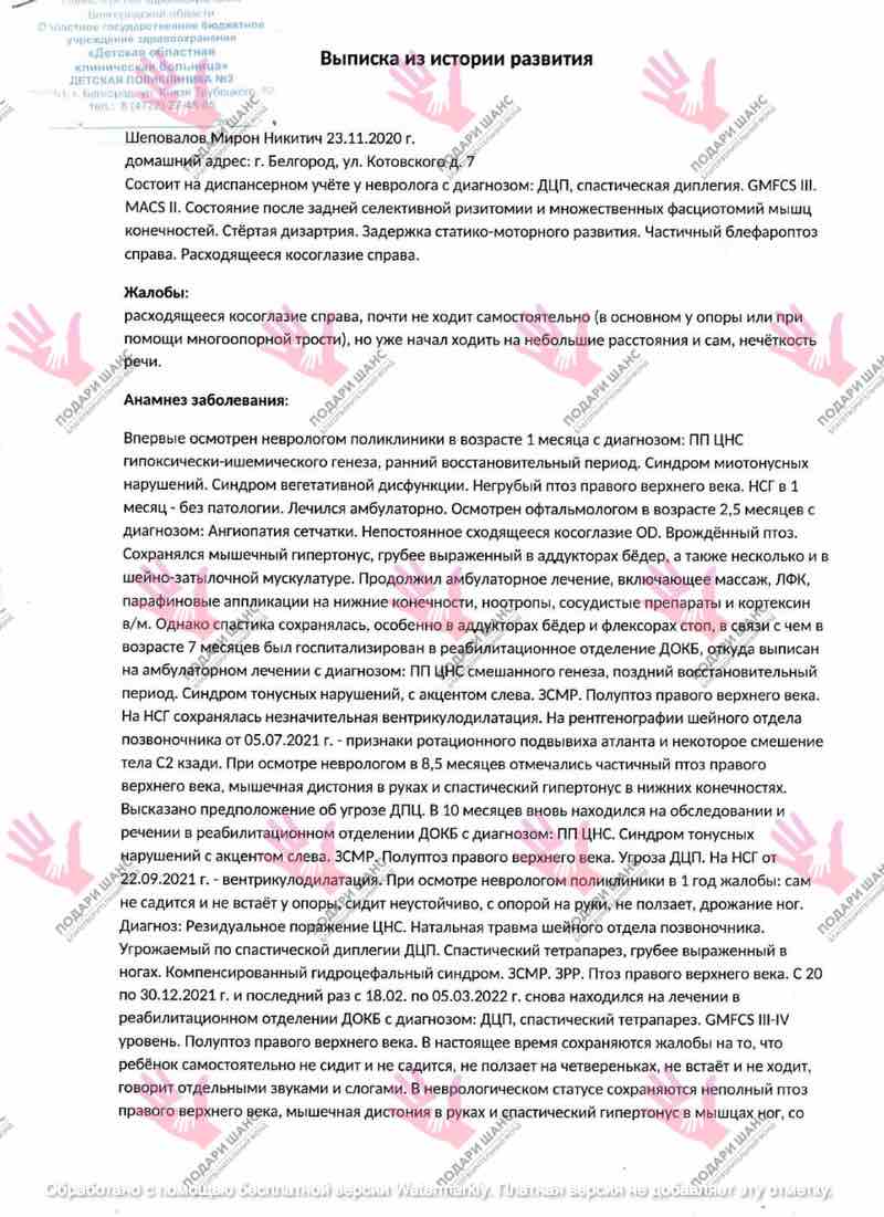 Все эти занятия помогают ему двигаться вперёд и не терять достигнутые результаты. Но чтобы Мирон смог научиться ходить самостоятельно, ему необходимы интенсивные курсы реабилитации.