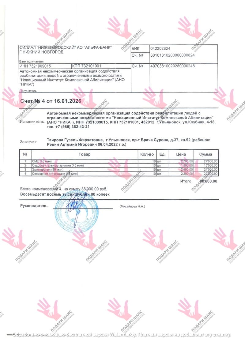 Каждый курс реабилитации - это шанс для него.Шанс сделать шаг. Шанс сказать новое слово. Шанс стать ближе к обычной детской жизни.