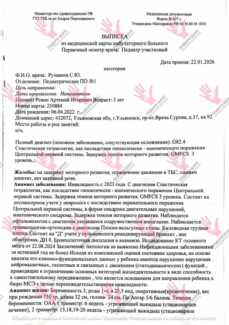 Семья уже сделала всё, что могла. Теперь им нужна наша поддержка.Пожалуйста, помогите Артемию получить необходимое лечение и реабилитацию. Даже маленькая помощь – это большой вклад в его здоровье, его будущее и его детство.