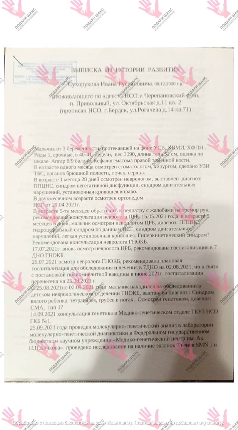 В первые месяцы жизни Иван действительно развивался как здоровый ребёнок: держал голову, переворачивался, интересовался окружающим миром.Но в 4 месяца родители начали замечать тревожные изменения. Появился тремор рук, движения стали слабее. Постепенно Иван начал терять уже приобретённые навыки: перестал уверенно держать голову, переворачиваться, исчезла опора на ноги.