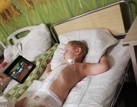 Недавно был удален катетер в руке и центральный - как возможные источники инфекции. Сейчас врачи установили новый - бедренный катетер. Привыкание к новому катетеру дается мальчику очень не легко - Серёже больно ходить, и поэтому он в основном сидит или лежит. Уже 2 месяца Сережа с мамой в больнице, он очень ослаб и похудел...