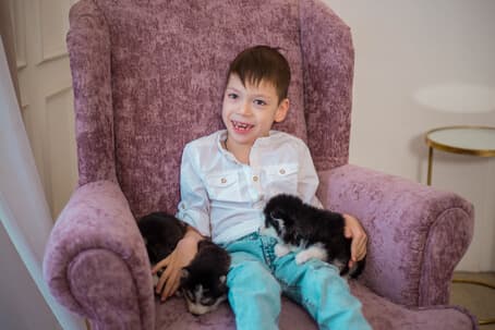 Он разговаривает, но есть дефекты в речи (слюнотечение, дизартрия). Необходимо развивать мелкую моторику. Миша всё понимает, хочет учиться и быть самостоятельным.