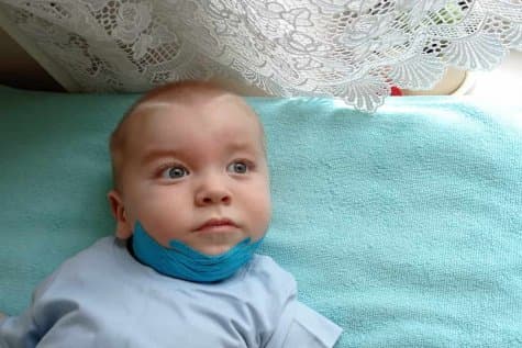 В настоящее время наш сын не держит головку, неподвижны ножки, ручки малоподвижны. Кушает очень плохо, но Кирюша прекрасно улыбается и гулит.
